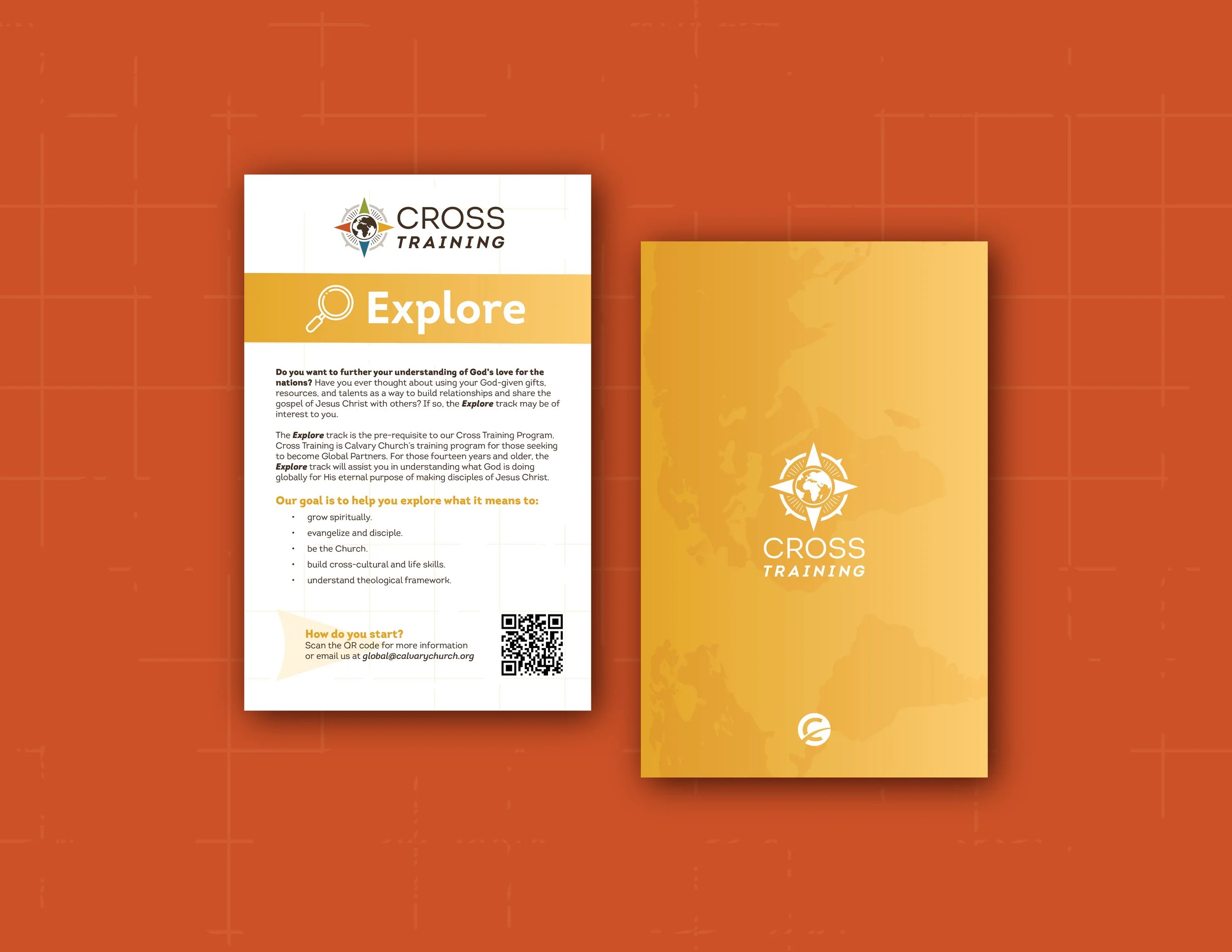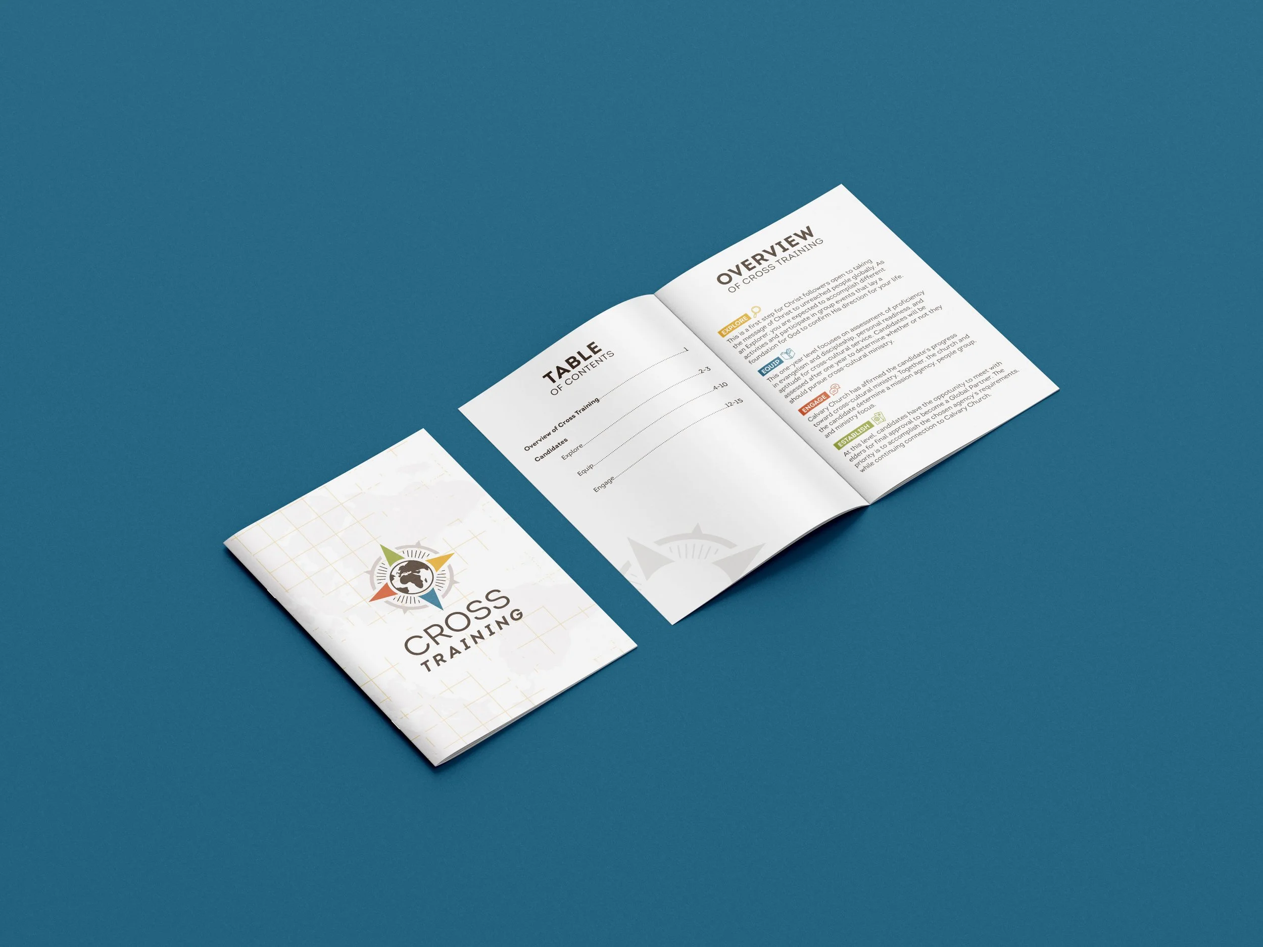 To create a brand identity for Cross Training, Calvary Church’s training program for those seeking to be full-time Global Partners. This includes a full brand kit, guidelines, print materials, and digital assets.